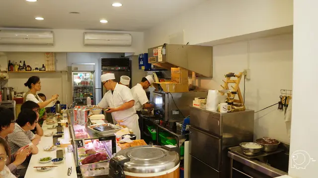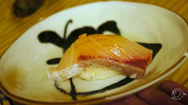 剛好看到師傅在炙燒生魚片海鮮還有星鰻