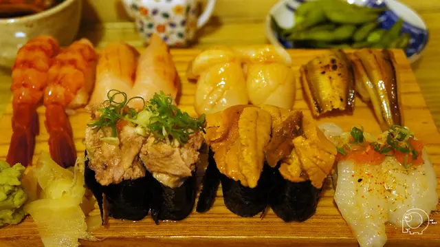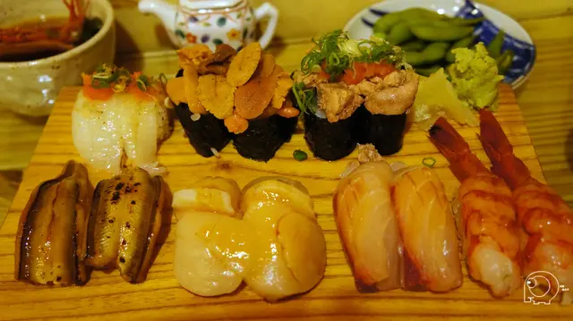 老K比較推的有北海道干貝握壽司、炙燒比目魚緣側握壽司、、紅甘肚握壽司、牡丹蝦跟胭脂蝦也都不錯