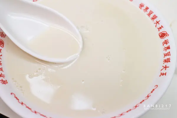 世界豆漿大王的豆漿濃郁醇實,其最大特殊之處就是那帶有點焦香味,店家說他們是特地用文火慢熬煮出而成。