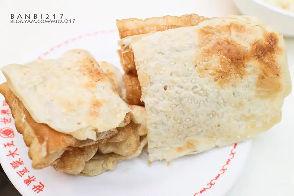 滿滿芝麻的燒餅和外面最大的不同之處在於他們的嚐起來不會有口乾難以下嚥的情況,這裡的燒餅濕潤許多且充滿了芝麻,夾上那酥脆的油條就是飽足感很夠的傳統中式早餐。燒餅除了夾油條、夾蛋外,還可以夾牛肉或是夾油條酸菜。