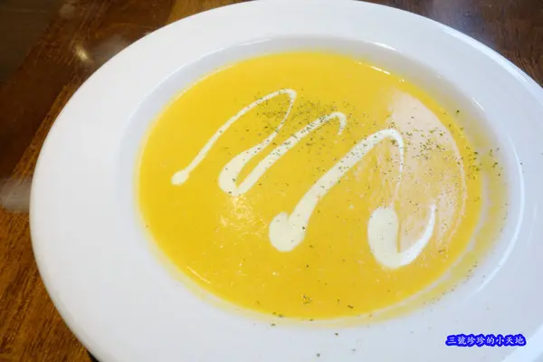 因為珍珍有點了一份甜點(甜點搭配湯或飲料可折抵$30),,所以這南瓜湯價格為$50元,感覺上是還不貴啦!在我還能接受的範圍內!哈哈~