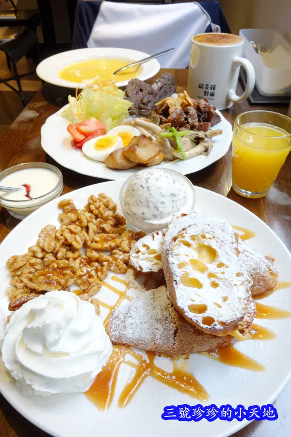 這次到圖書館對面用餐,珍珍覺得早午餐的餐點比甜點有特色多了,且看其它客人也大都點主餐類的食物,是說當天吃到不是很滿意的甜點時,珍珍滿腦子都是隆隆將的乳酪煎餅啊~好想吃好想吃好想吃!!!!(地上狂打滾~)
