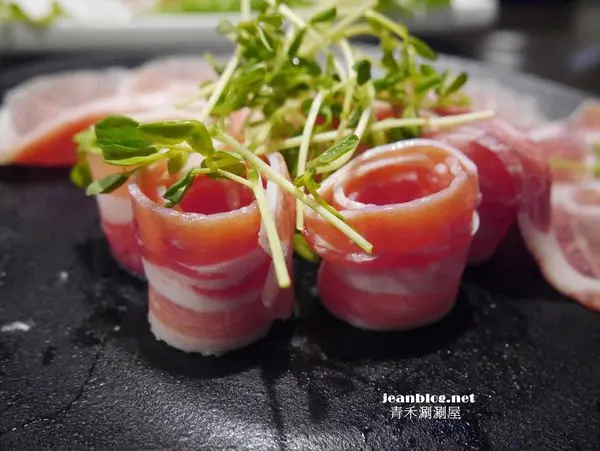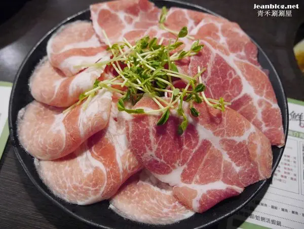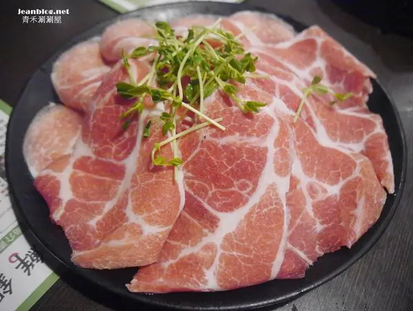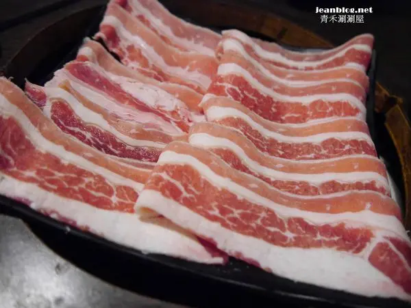 綜合豬肉片鍋(梅花豬/松阪豬/培根豬)右邊是梅花豬 左邊是松阪豬,培根豬在中間被其他兩種肉片覆蓋
