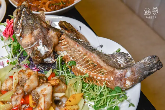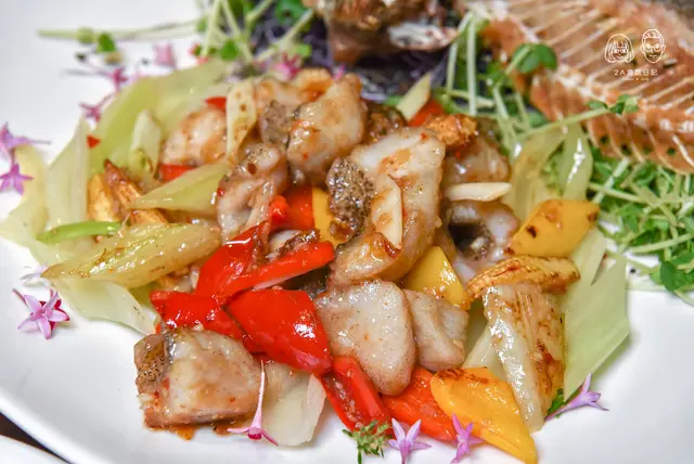 帶點魚皮的魚肉除了軟嫩還很Q彈,這道是以龍虎斑xo醬炒球的方式來製作,細細品嚐感受得到魚肉的鮮甜,而且也沒有一丁點的腥味,就連不愛吃魚的我也覺得好吃!搭配脆脆的甜椒、玉米筍、芹菜,口感層次更豐富。