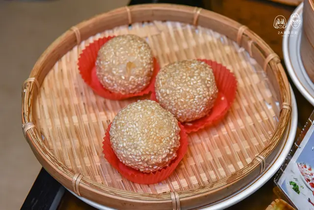 蓮蓉芝麻球外層酥酥脆脆的,裡頭軟Q很有彈性,享受得到濃濃的芝麻香及蓮蓉餡料的香甜,讓人很容易一顆接著一顆!
