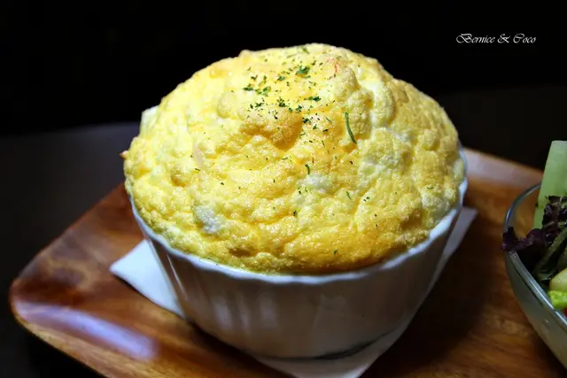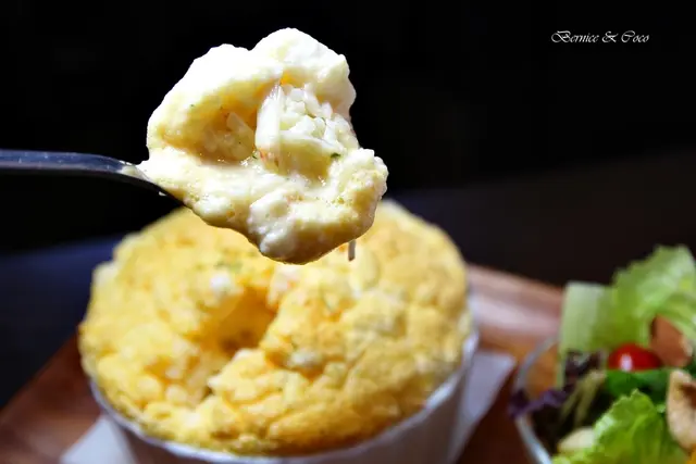 鹹口味的法式海鮮舒芙蕾(附油醋沙拉)讓人超新奇