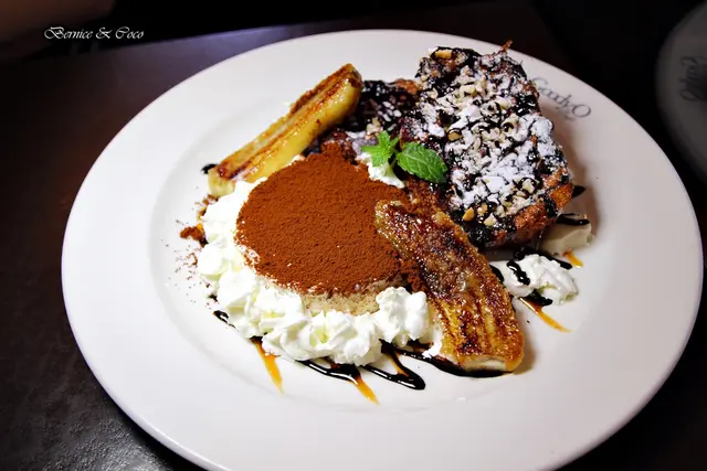 一旁的奶油焦糖香蕉,獨特的品嚐口感自然甘甜不做作