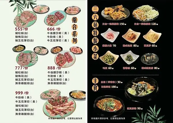 三六苑日式燒肉菜單