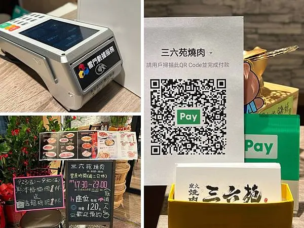 三六苑燒肉引進超多支付方式,信用卡、 LINEPAY等都可以,而且不定期推出各種優惠好康活動,讓人每次來都有不同的好康可以撈~
