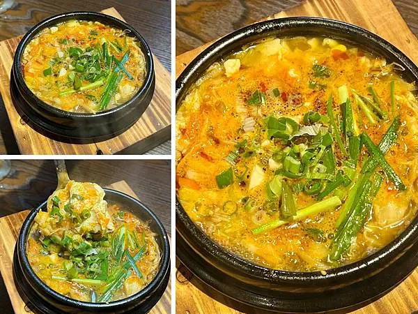 超便宜韓式豆腐鍋,裡頭滿滿豆腐、肉末、味道不會太鹹太辣,搭配芋香飯當韓式湯泡飯相當適合,熱騰騰全身都暖起來~