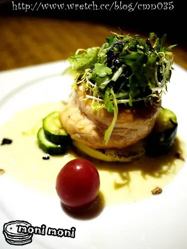 鱈魚淋上特殊的綠色醬汁 真的很棒的調味