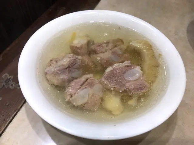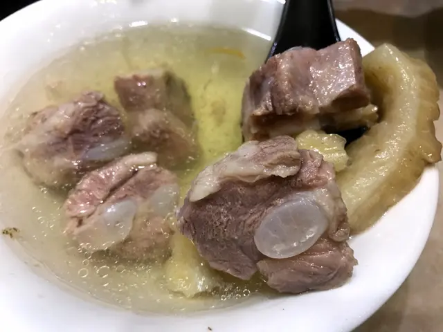 苦瓜排骨湯,除了香菇雞以外,苦瓜排骨也是不錯的選擇,處理過的苦瓜吃起來不苦又燉得很軟,排骨肉嫰也好入口,湯頭也是走一個甘甜清爽的路線,沒有過多的調味就好喝。