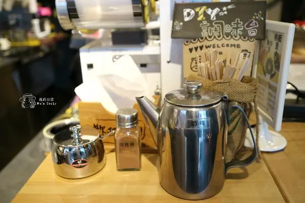 吧台旁就是自助區,不夠甜不夠奶都可以自己加