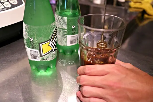 一上桌時杯子裡面的氣泡大動作的跳著波浪舞