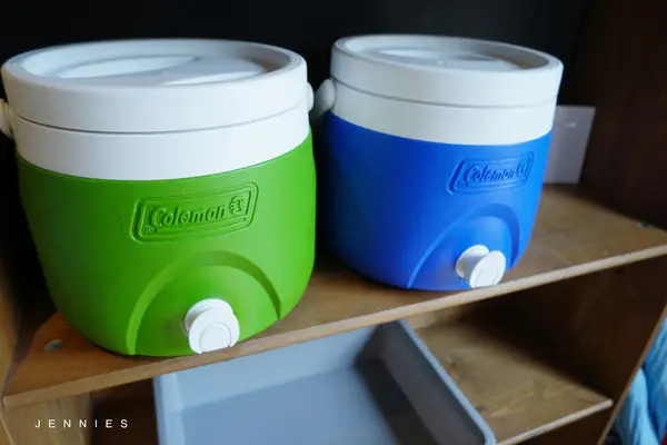 冷水壺,一開始研究半天,大姆指要壓住中間的扣環,食指跟中指往外拉開,滿喜歡這個水瓶的造型與設計,出外野餐也很適合攜帶喔!