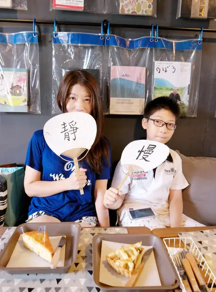 扇子上的文字可以隨意搭配;有海、消、熱、貓、靠...等等,這個也太有創意了吧!好有趣喔!但有人來到這一直滑手機(只有我跟小子自己在玩)男生對這個是不是比較沒有感覺?