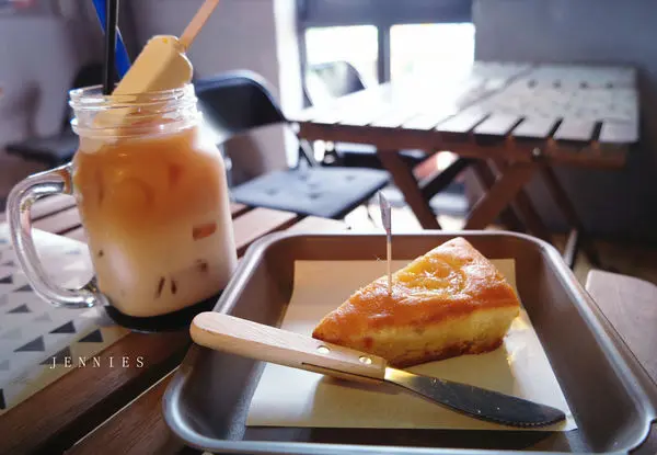 店內不管是擺設或是使用的餐具我都很喜歡!蛋糕比較偏甜所以搭配奶茶及咖啡剛剛好綜合了甜度;黃檸檬洞洞蛋糕吃起來很紮實,微酸微甜,下面的派皮吃起來相當好吃。我們切成三等份,整個奶香味濃郁,檸檬的酸甜一入口就已融化