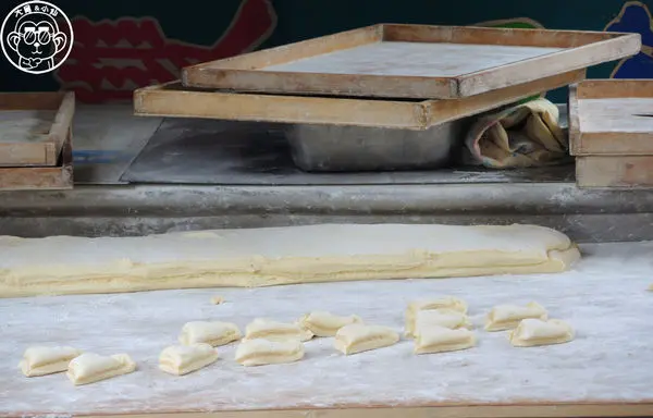 老闆有條不絮的製作雙胞胎和甜甜圈,手工製作乾淨看得到