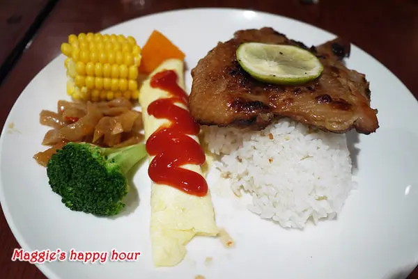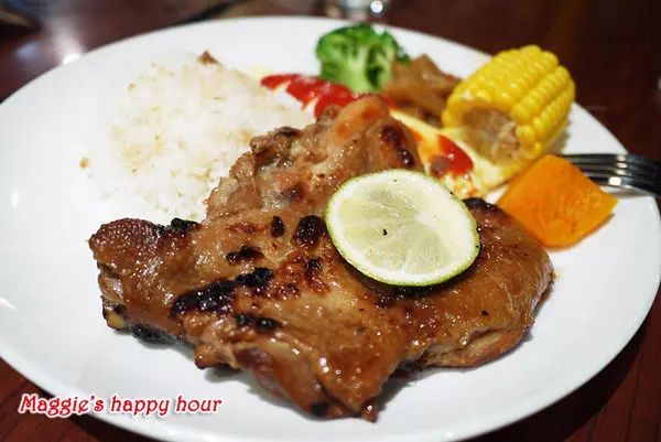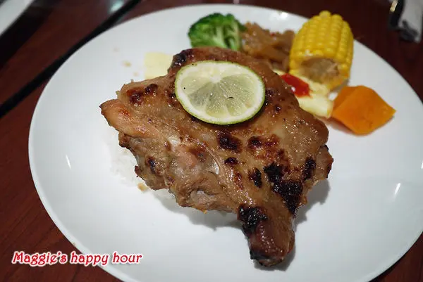 雞腿排上還附了一片檸檬,雞腿排本身的肉質鮮嫩有彈性,而且醃製有入味,烤的香香的還蠻好吃的,滴上幾滴檸檬也別有一番滋味。