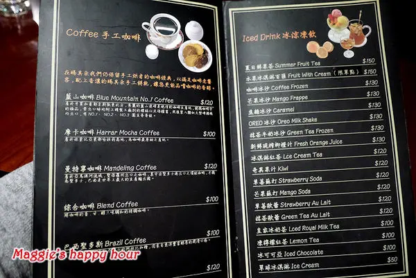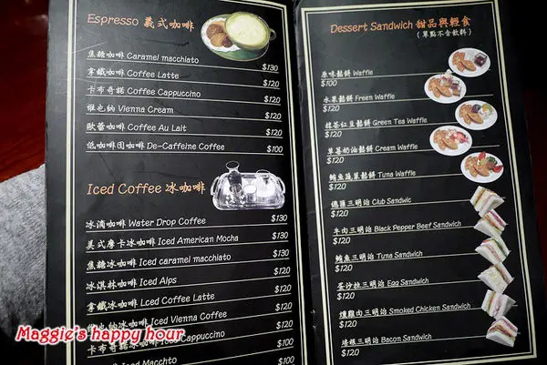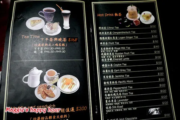 下午茶的部份有二種選擇,一個是蛋糕搭配飲料,一個是三明治或鬆餅搭配飲料,都在200元之內,價格很有競爭力,以上用餐時間都是二小時,店家生意很好,二小時到大概就得買單走人。