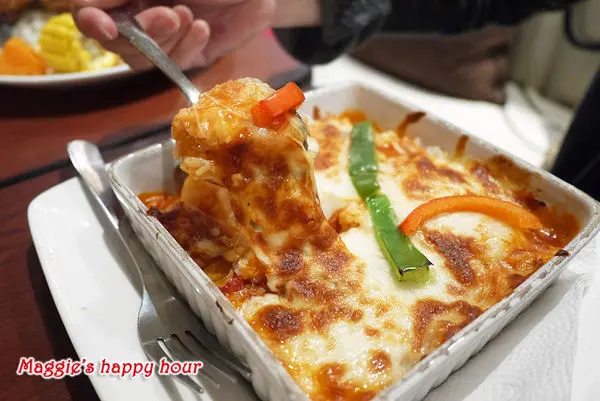 外層舖的起司還滿多的,拉起來也會牽絲,裡面的飯偏軟,醬料感覺沒有充份吸進飯粒裡,整體來說比較平淡。