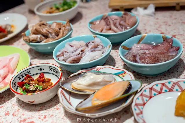 鮮蚵大概季節快過了,感覺有點小,但吃到飽沒差,就下一輪不要點,魚片、花枝新鮮度也很不錯,花枝大概來了兩輪,魷魚腳就還好,淡菜也還好,可點可不點。