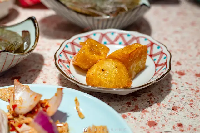 三杯米血蠻大的鍋子,上來還在加熱的感覺,但裡面放的東西有夠小份,大概就一到兩個人吃就結束了,可是不得不說處理的還蠻好吃的,米血很軟嫩,甜不辣有吃到辣沙茶的風味,整個推推。拔絲地瓜真的就還好,外面的糖衣有點薄,吃起來沒有那種硬脆的口感,裡面的鬆軟又不明顯。