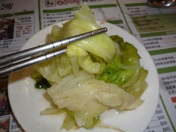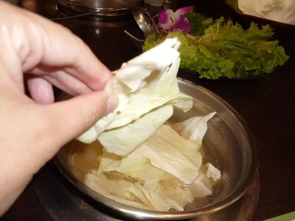 吃完肉類,就得吃點青菜平衡一下,高麗菜份量很夠,把高麗菜用手撕一片一片,慢慢放入鍋中,綠色大陸妹也放入鍋中熬煮.煮熟的高麗菜顏色看起來有點青翠,可能火鍋的熱度,以及吸附火鍋的湯汁,吃起來的口感有種自然的鮮甜.