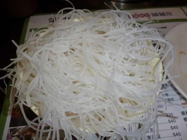 冬粉和麵可以自由取用,我是選擇冬粉,因為每次吃涮涮鍋,我都習慣吃冬粉,其他火鍋店,飯,麵,冬粉都不能無限享用,但這家店卻能自由享用冬粉和麵條,我把冬粉裝滿滿一整碗,再把冬粉倒入鍋中熬煮,煮熟後的冬粉用筷子夾起來相當滑溜,吃起來的口感相當滑溜順口.