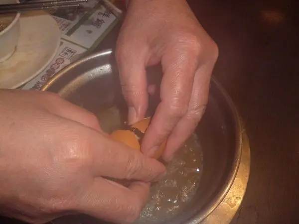 只有吃冬粉哪裡足夠,當然還要來一顆蛋來補充營養,這家店每個主餐都有附雞蛋一顆,還是紅色的機能蛋,現在涮涮鍋店的主餐已經很少有附雞蛋了,這讓我很感動.既然有雞蛋,就來作水煮荷包蛋,先把蛋殼打破,蛋黃和蛋白滑入滾燙的鍋中,不但要一邊控制爐子的溫度,還要一邊用湯匙保持蛋白和蛋黃的塑形,使蛋白不會沾鍋.最後把完成的水煮蛋放在碗中,用筷子戮一下,蛋黃還會流下來,吃起來的口感鮮嫩滑順,滿足一點小小的成就感.