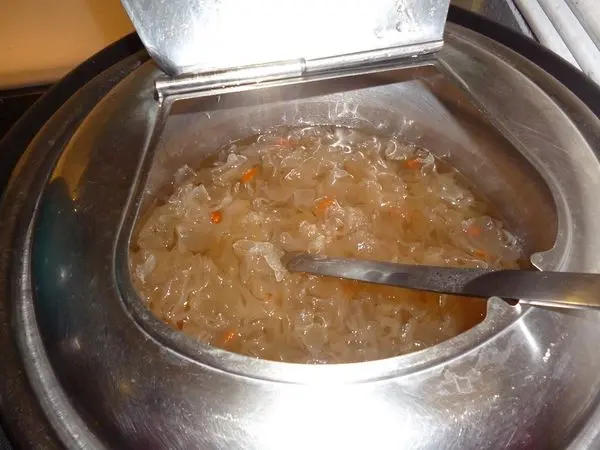 除了霜淇淋,還有其他甜食,像銀耳甜湯是一道熱甜湯,我一打開鍋子,裡面是滿滿的銀耳,吃起來的口感,湯汁有點稠,甜度上比較偏甜.