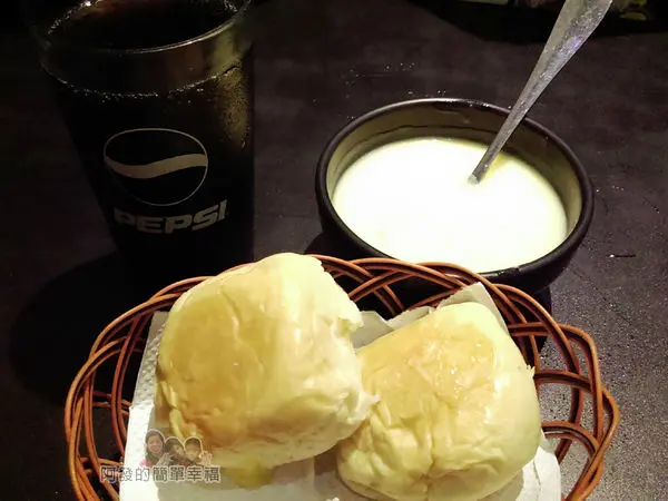 附有爆漿餐包、玉米濃湯、百事可樂、霜淇淋(用完主餐後才上)