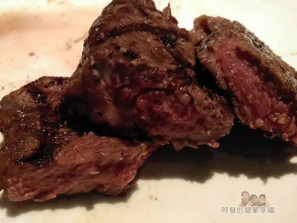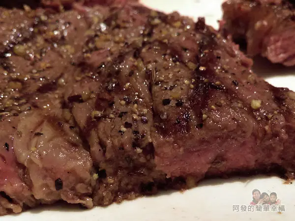 先不加任何的醬料,一口吃下,牛排外表焦香內在軟嫩多汁,滿口好牛肉的油脂濃郁鮮甜好滋味…