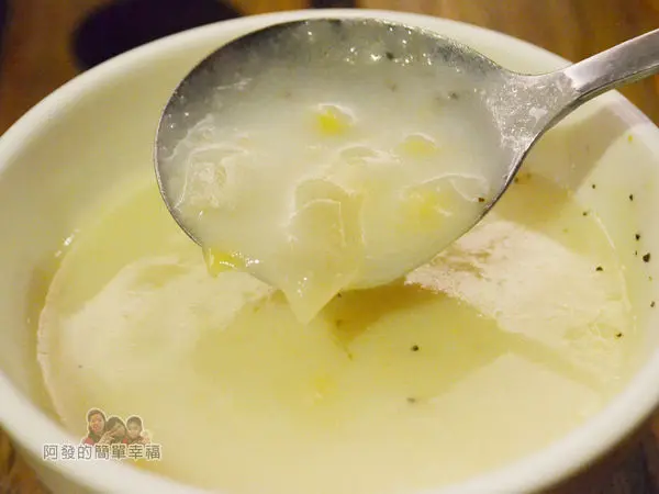 只要點排餐,店家就會附上可樂與玉米濃湯