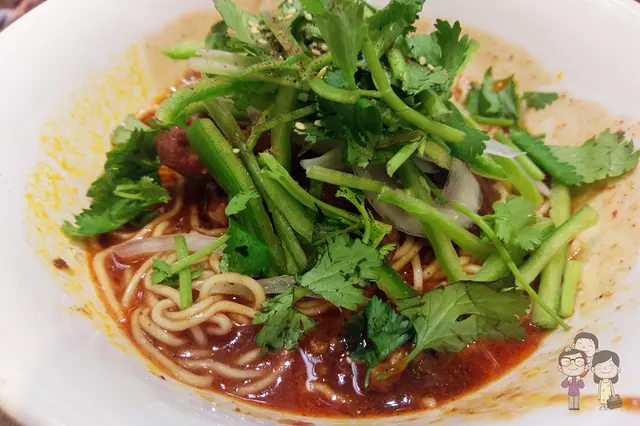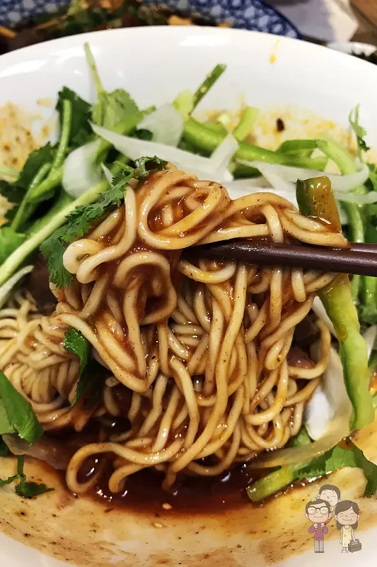 牛肉的部分,跟湯麵使用的是一樣部位的肉塊,拌著醬汁一起享用,還不錯吃啦!
