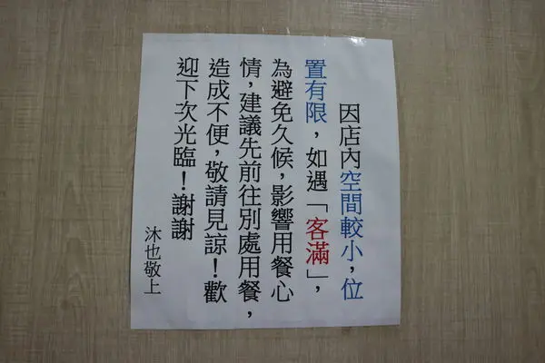 門口也有貼上告知,因為店內空間較小、位置有限,