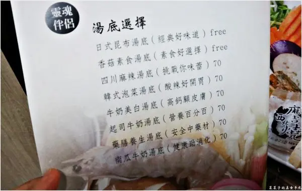 其餘的麻辣湯底、牛奶鍋等湯頭要另外加$70元,