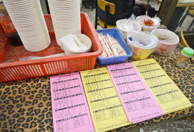 阿忠牛肉麵的外帶內用單用顏色區別,而且擔心人力忙不及