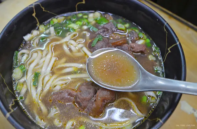 肉塊都比湯匙還要大,略數了一下也有五、六塊以上,麵的份量也很多, CP值超高!難怪很受當地人喜愛