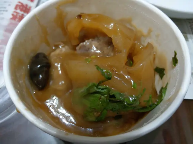 這裡屬油泡肉圓。外皮彈而微硬韌,入口有時需些許拉扯。餡