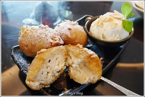 香蕉球油炸外酥溫熱,搭配哈根達斯香草冰淇淋