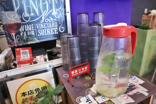 ▲水、水杯、紙巾、置物藍可自取,無10%服務費先入座後結帳、低消飲品一杯,