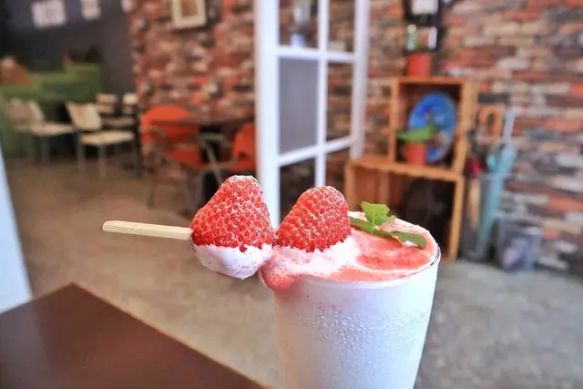 ▲一整杯粉嫩嫩的草莓牛奶加上草莓串,少女心真的大爆棚呀,萌萌的讓人放生尖叫!