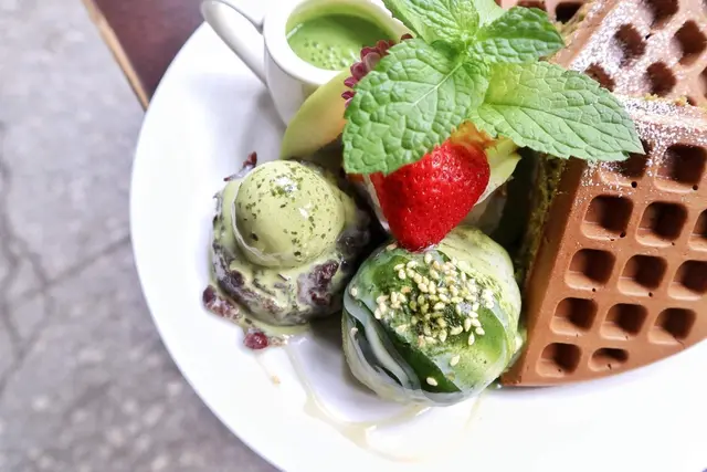 一入口濃郁微苦略有點甜的抹茶冰淇淋,搭配顆顆分明的紅豆甜度剛剛好,好似那年在日本某間店的炙熱午後享用的宇治金時甜點。