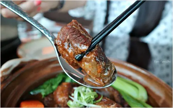 還吃得到富有豐富膠原蛋白的牛筋,一旁襯上青江菜和紅蘿蔔,