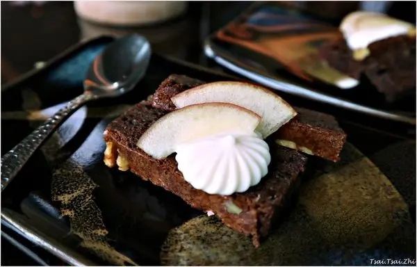 飯後會附一份水果或甜點,今天吃到的是核桃布朗尼蘋果,