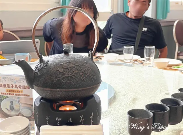 入座會先送上一壺熱茶。我們這天共約20多人用餐分兩桌,被安排在2樓一間小包廂內,
