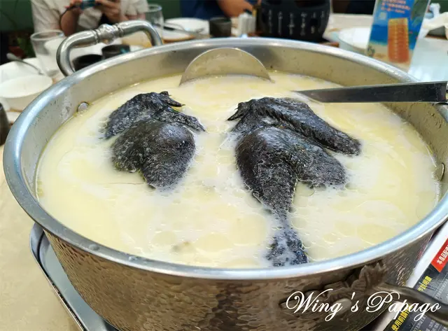 鳶山紅樓嚴選烏骨雞、山藥、蓮子及糙米等食材,費時熬煮出乳白濃郁湯頭,