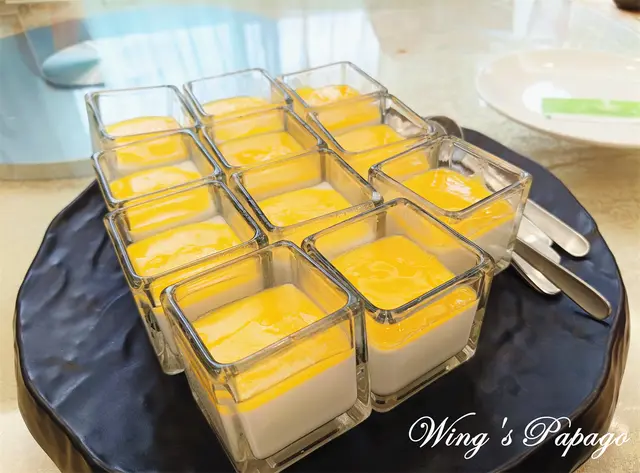 合菜的甜點為芒果奶酪,奶酪滑嫩細綿,拌入香甜芒果果醬更加好滋味。