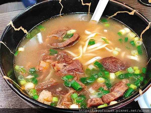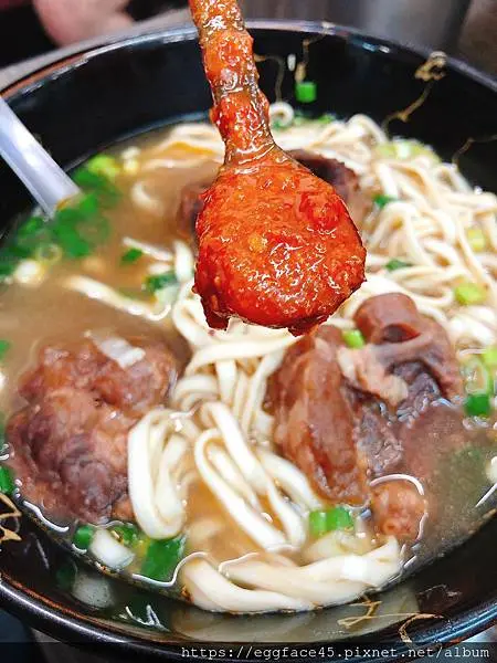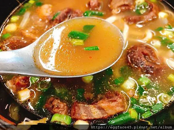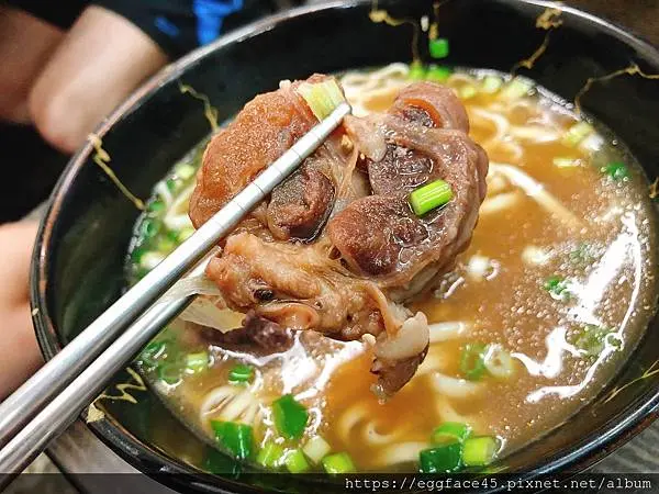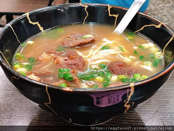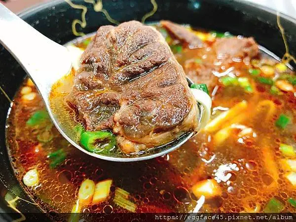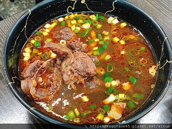 它是新北市在地的 新莊美食牛肉麵,以牛骨熬煮的湯底,濃郁又美味,
